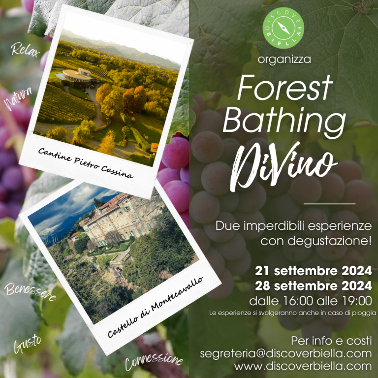 Un'esperienza di 3 ore immersi tra i vigneti e le zone verdi circostanti, in cui sarete gradualmente accompagnati a riconnettervi con i vostri sensi, sostando nella percezione di tutto ciò che è intorno e dentro di voi, che si concluderà con la degustazione di vini biellesi direttamente nel terroir in cui sono cresciuti.