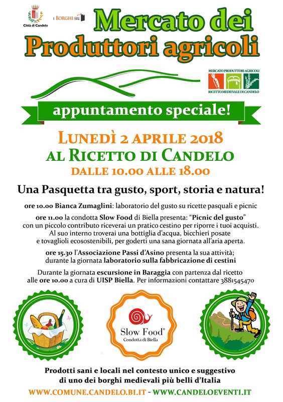 La Città di Candelo e Slow Food Biella organizzano una edizione speciale del Mercato dei Produttori agricoli, con prodotti sani e locali e molti altri appuntamenti da non perdere!