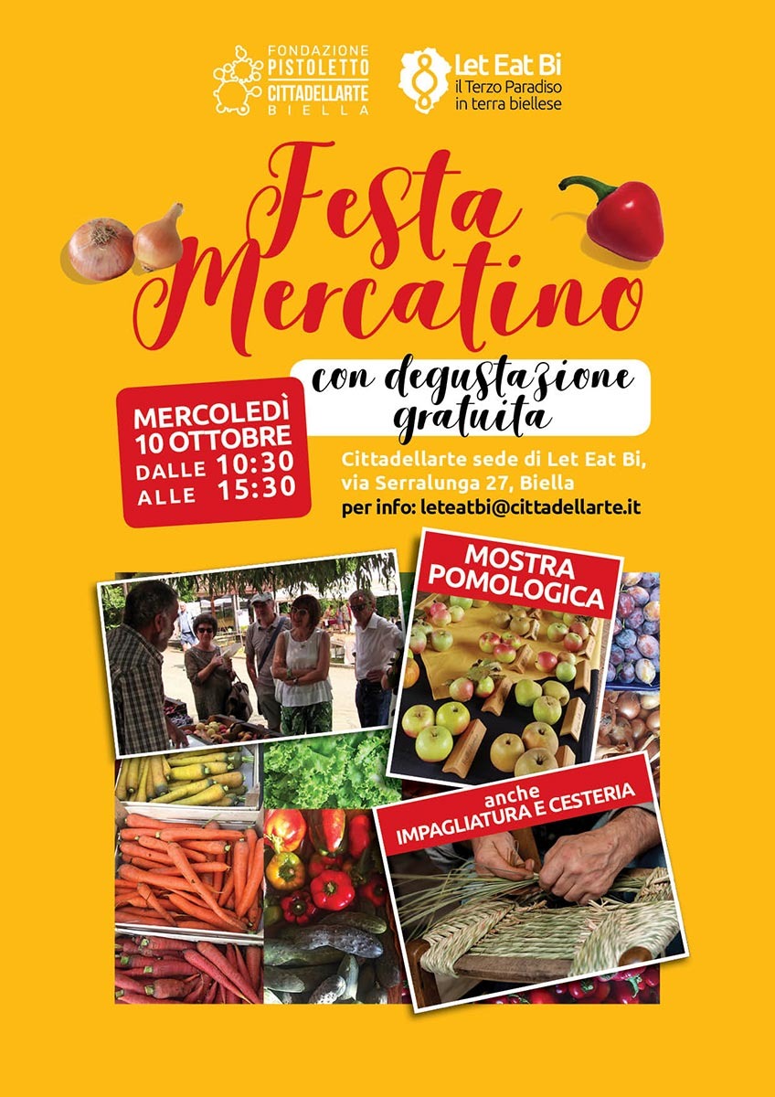 Mercoledì 10 ottobre, dalle 10.30 alle 15.30, verrà riproposta la festa del mercatino di Cittadellarte. Per l'occasione, sarà possibile acquistare le specialità in vendita, tra frutta, verdura, miele e formaggi.